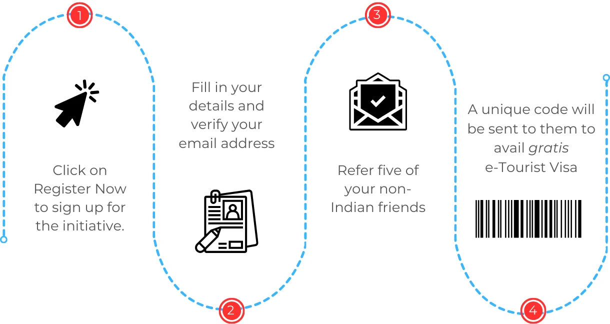 Calling the Indian diaspora to invite five of their non-Indian friends on a first-come, first-serve basis to avail a gratis e-Tourist Visa and explore our